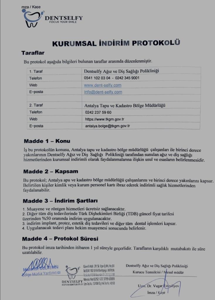 DENTSELFY AĞIZ VE DİŞ SAĞLIĞI POLİKLİNİYİ İLE KURUMUMUZ ARASINDA İNDİRİM PROTOKOLÜ İMZALANMIŞTIR