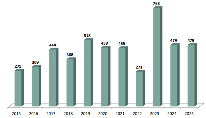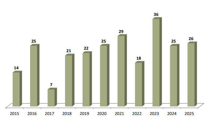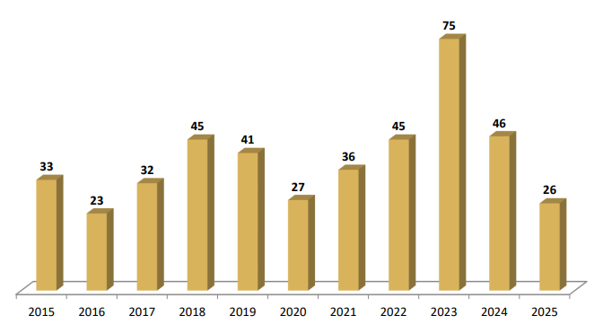 2015 yılından bugüne kadar vefat eden personelin dağılımı aşağıdaki gibidir. 2025 yılında 26 personelin vefat ettiği görülmektedir.